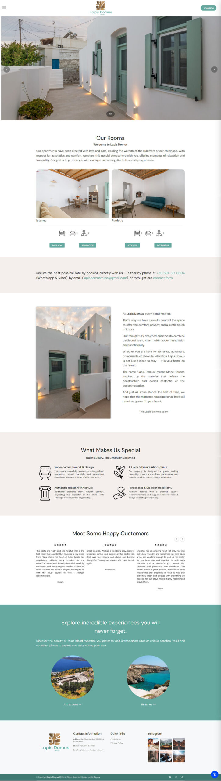 Σε συνεργασία με τον συνεργάτη μας της RM-Group αναλάβαμε την υλοποίηση της ιστοσελίδας της Lapis Domus, δύο ενοικιαζόμενων διαμερισμάτων στη Μήλο.